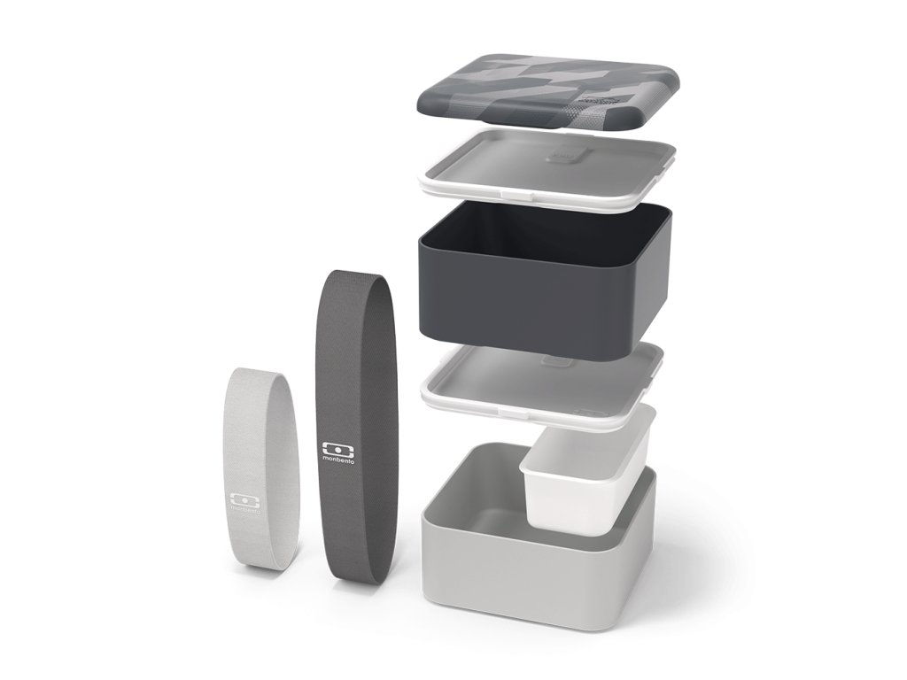 K bento boxu dostanete dvě gumy na utěsnění - ta délší drží pohromadě obě dvě patra, zatímco ta kratší slouží při použití pouze jednoho patra. Díky tomu tak můžete být velmi flexibilní a v případě menších obědů či svačin si s sebou vezmete pouze jedno patro. Celý bento box nakonec zastřešuje vrchní víko, pod které se vejdou speciální Monbento příbory či hůlky (viz produkty níže).