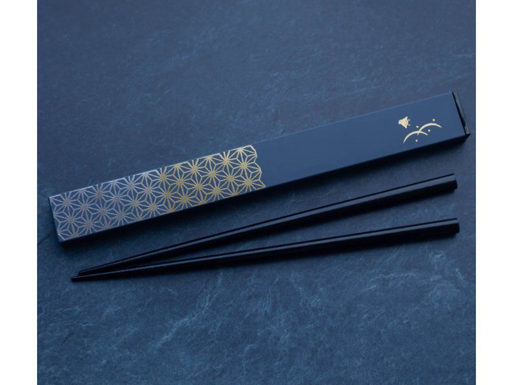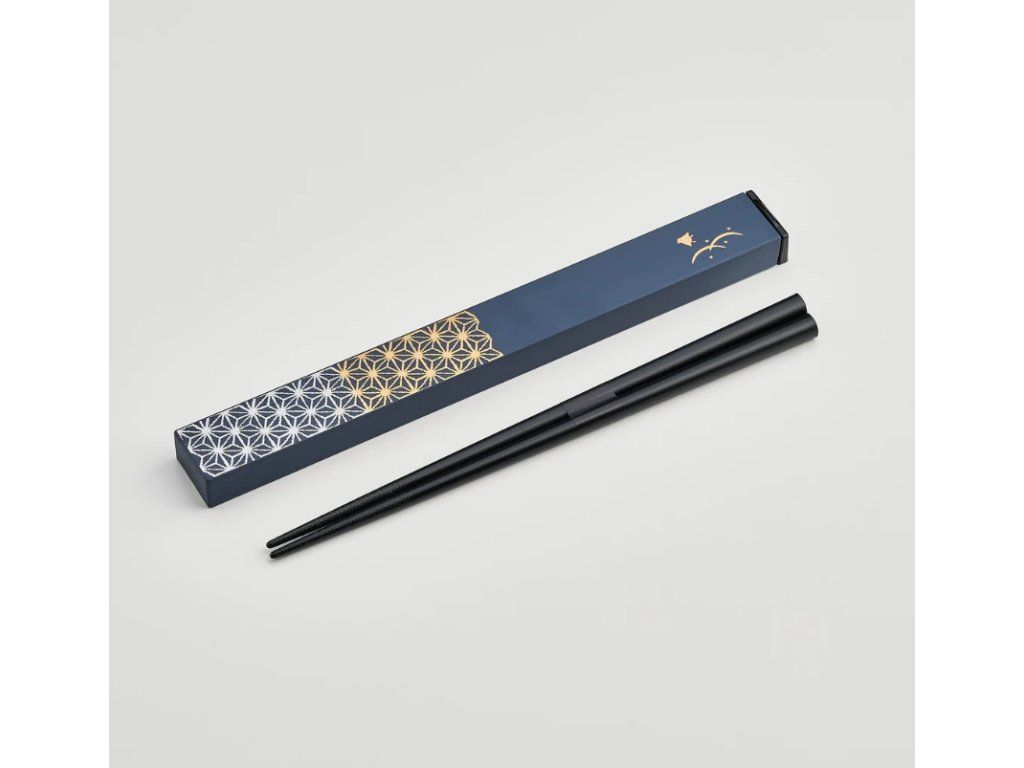 Sada dřevěných hůlek Asanoha v pouzdře – modrá