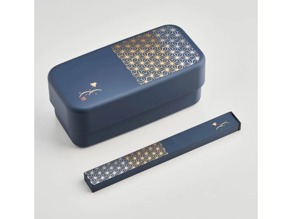 Tradiční japonská elegance: Nádherný motiv konopného listu (asanoha) v kombinaci s břidlicově modrou barvou a zlatými detaily dodá vašemu stolování nádech luxusu a klidu.