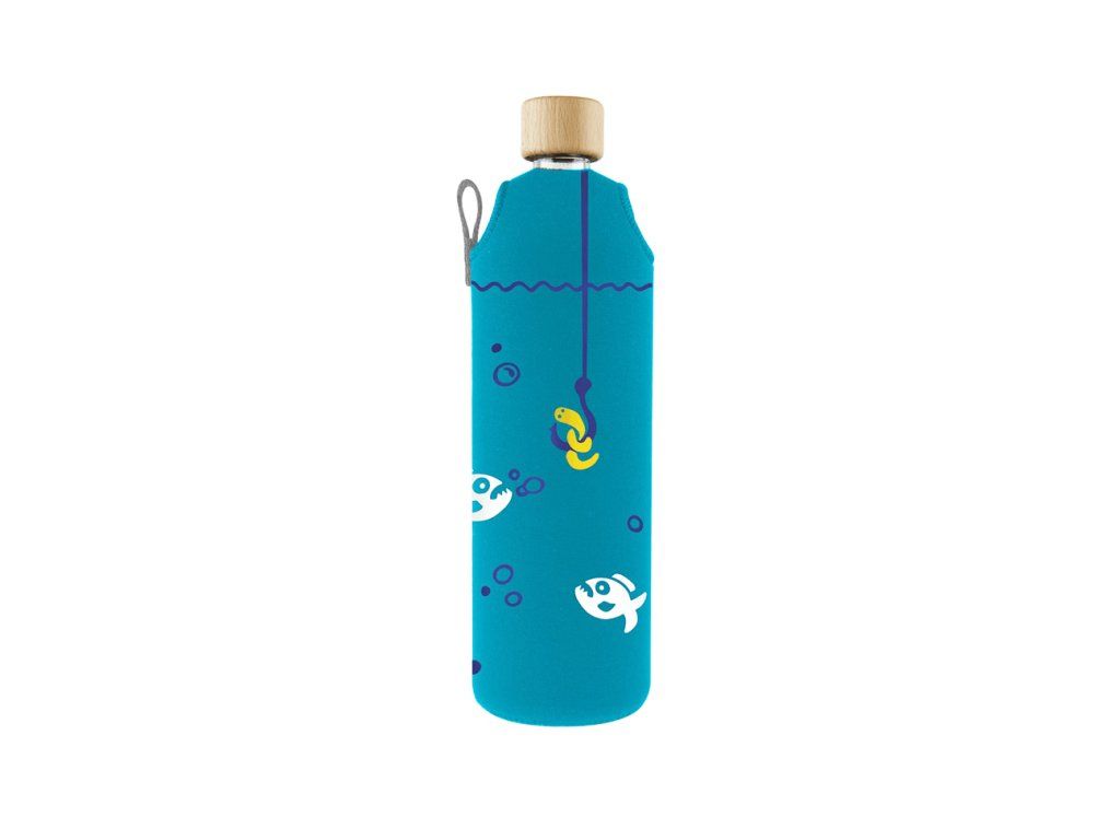 Tento produkt je dílem malé české firmy a české sklárny. Design: světle modrá s motivy piraní. Ideální pro všechny, co mají rádi hravý design anebo pro rybáře.