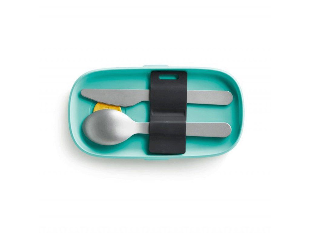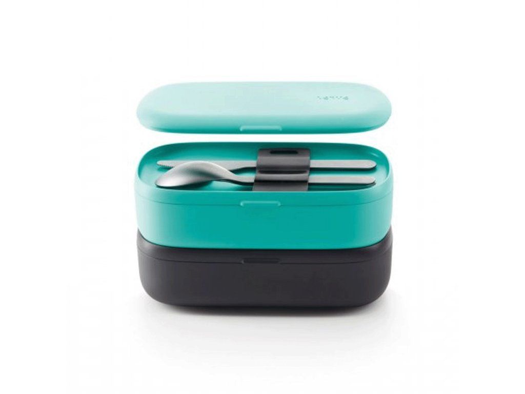Cestovní příbor přímo určený k boxům Lékué. Praktická sada nerezových příborů (lžíce, vidlička, nůž) je spojená pohromadě v elegantním silikonovém obalu a vkládá se pod vrchní víko modelu Lékué Lunch Box to Go. Dejte sbohem polámaným plastovým příborům i bitvám o poslední zbývající vidličku v kuchyňce v práci.